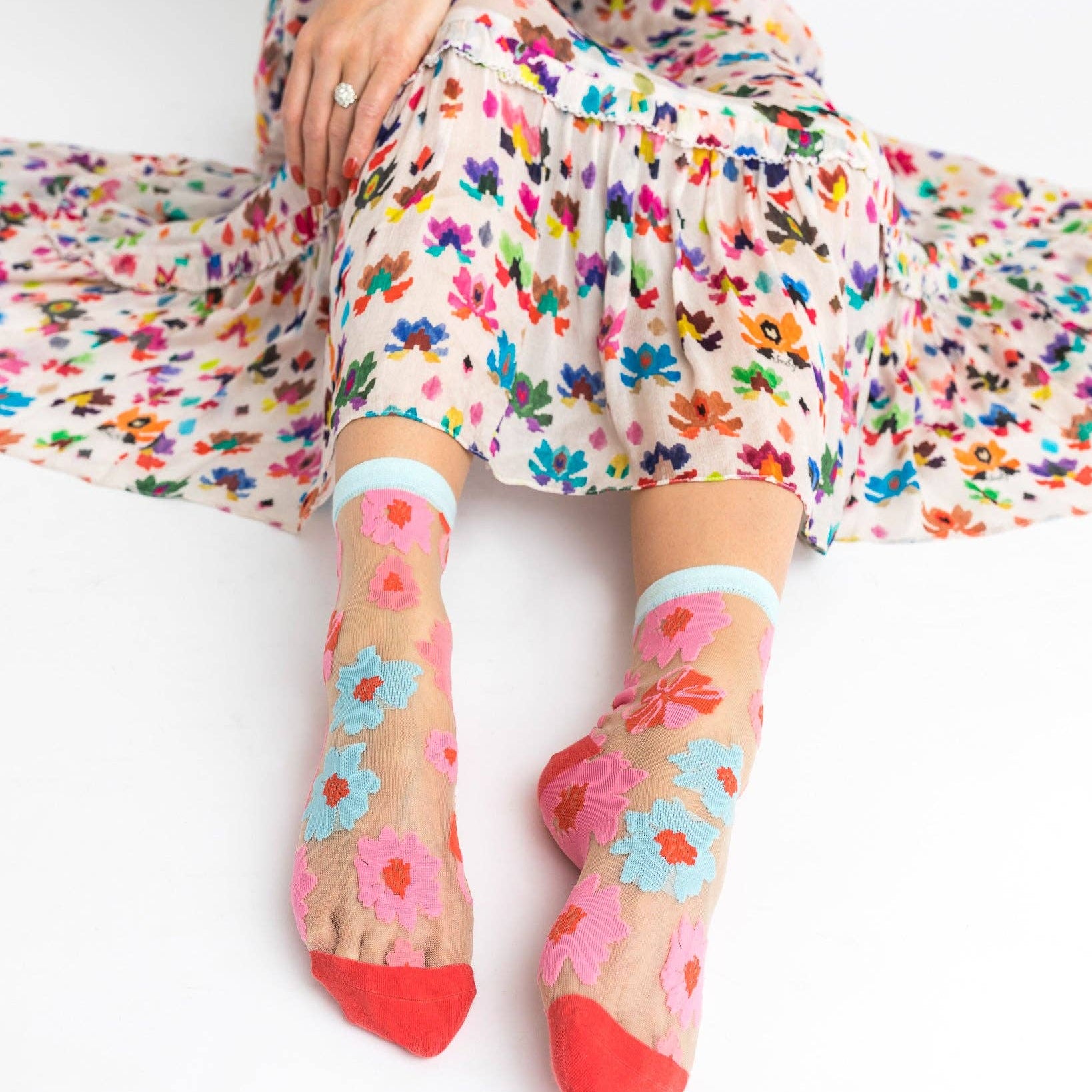 Ribbon Roses Sheer Ankle Sock
