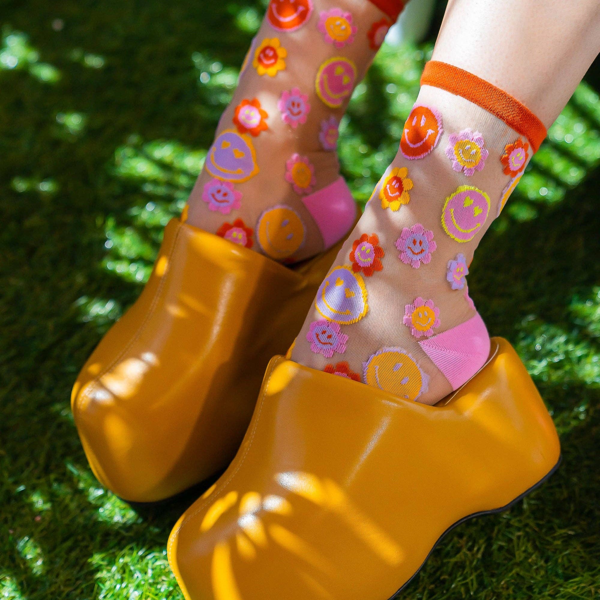 Smiley Face Daisy Sheer Crew Sock
