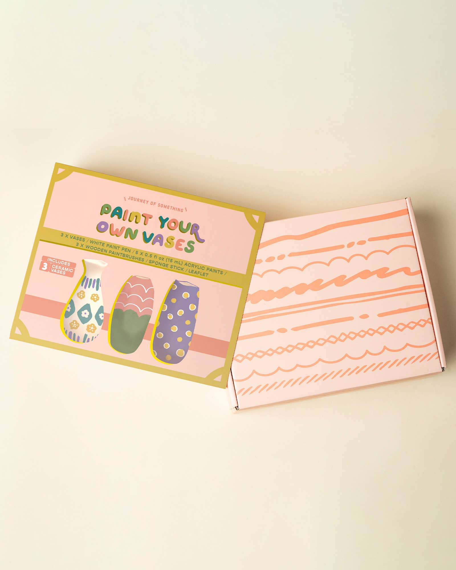 Design and decorate your own ceramic vases with this all-in-one DIY kit. Perfect for personal creativity or group activities, this kit includes three white ceramic vases, vibrant acrylic paints, a precision paint pen, brushes, and more.