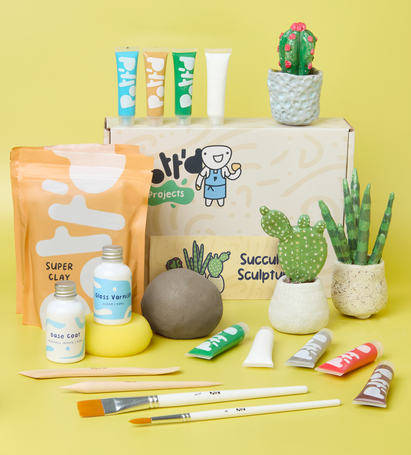 Bring your love of plants indoors with the Succulent Sculptures: Garden Trio pottery kit for beginners. This fun set lets you craft your own clay succulents that never need watering. Whether you’re making a single charming plant or a whole mini garden, it’s a playful way to add a personal, leafy touch to your space. Use the easy clay, nature-inspired paints, and step-by-step video to shape adorable succulents and quirky little plants—each one a unique creation. Perfect for relaxing, decorating, or gifting, no green thumb needed!