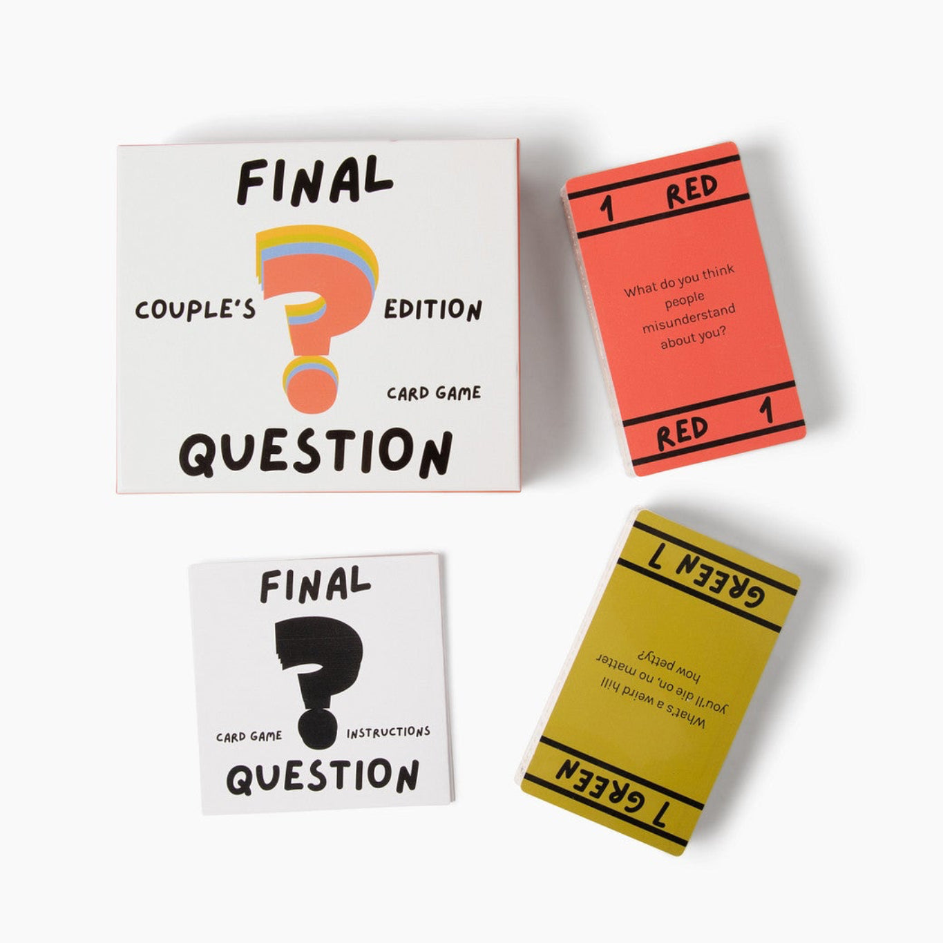 Deep questions meet playful chaos. Final Question: Couples Edition is a game of strategy, surprises and better conversations for couples!