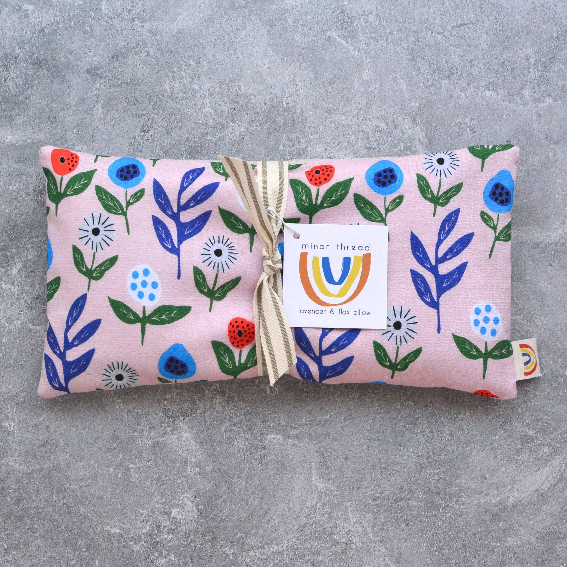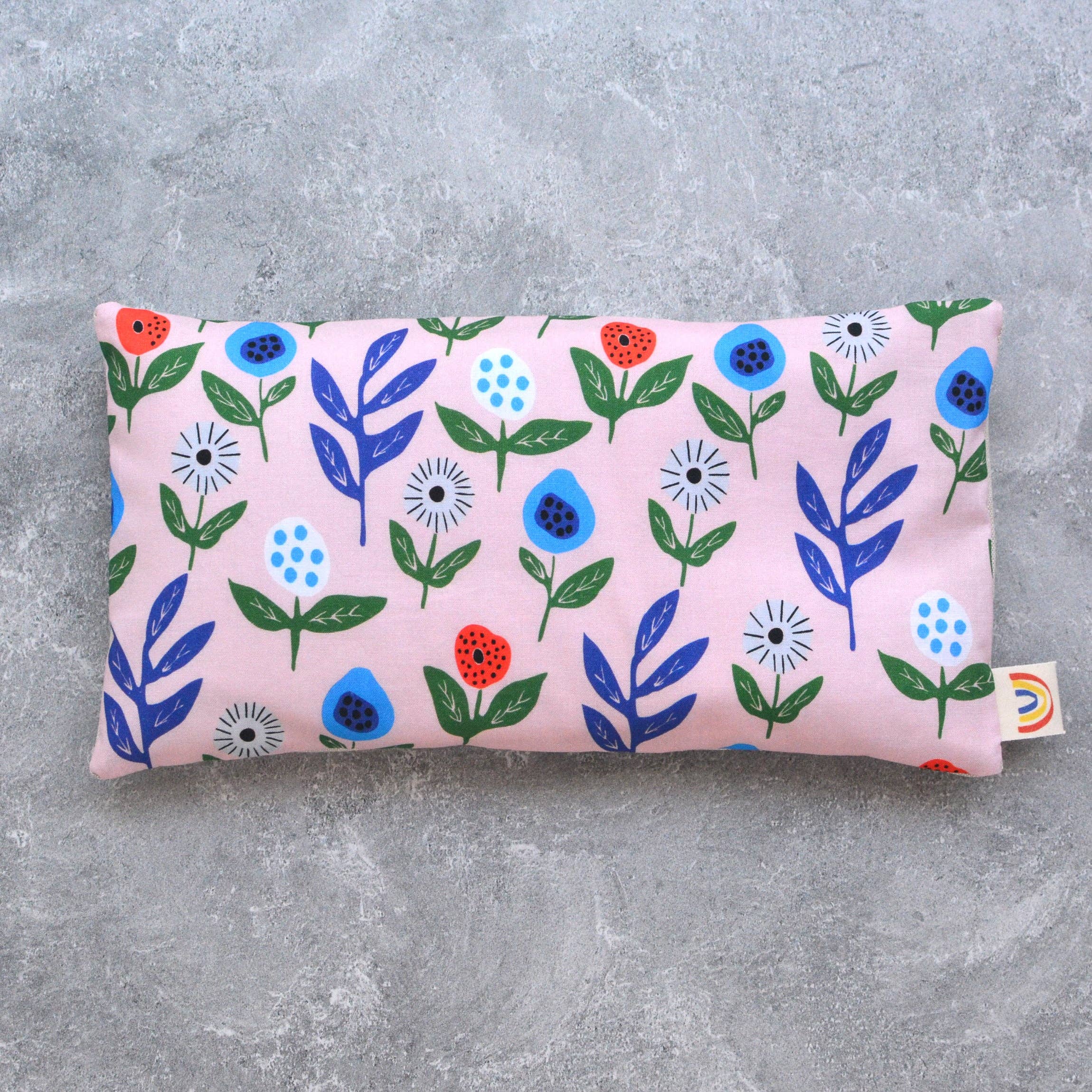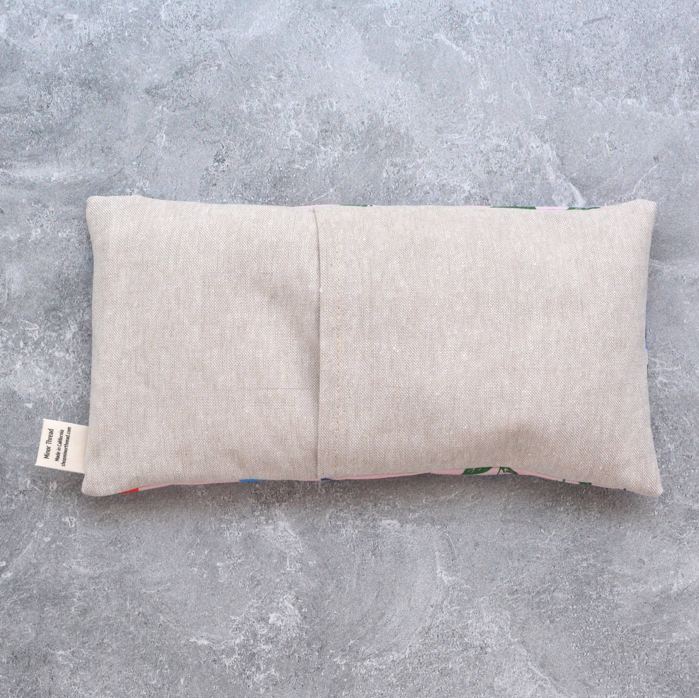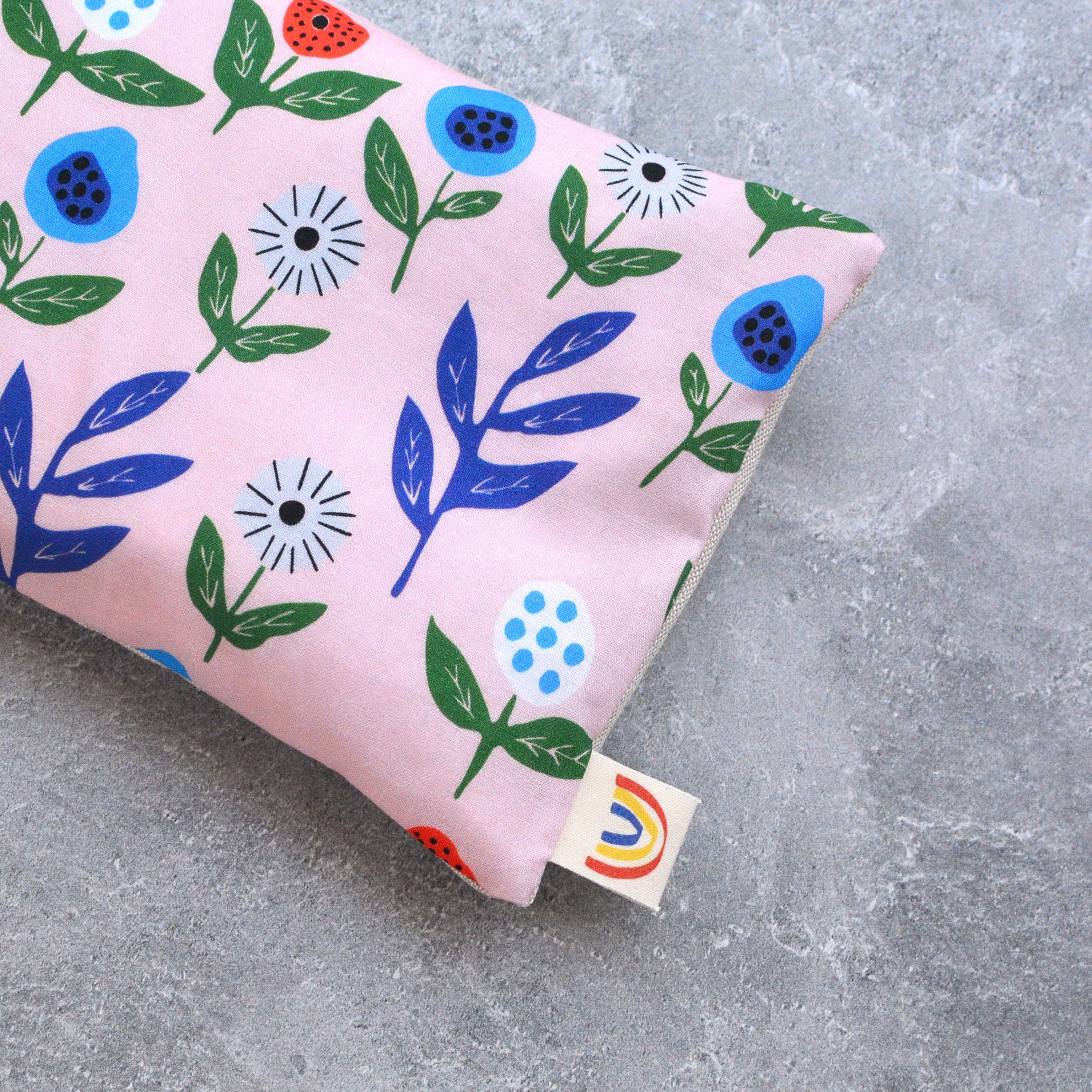 Made with a soft cotton fabric in a pink floral pattern by artist Leah Duncan, backed with soft flax linen fabric.