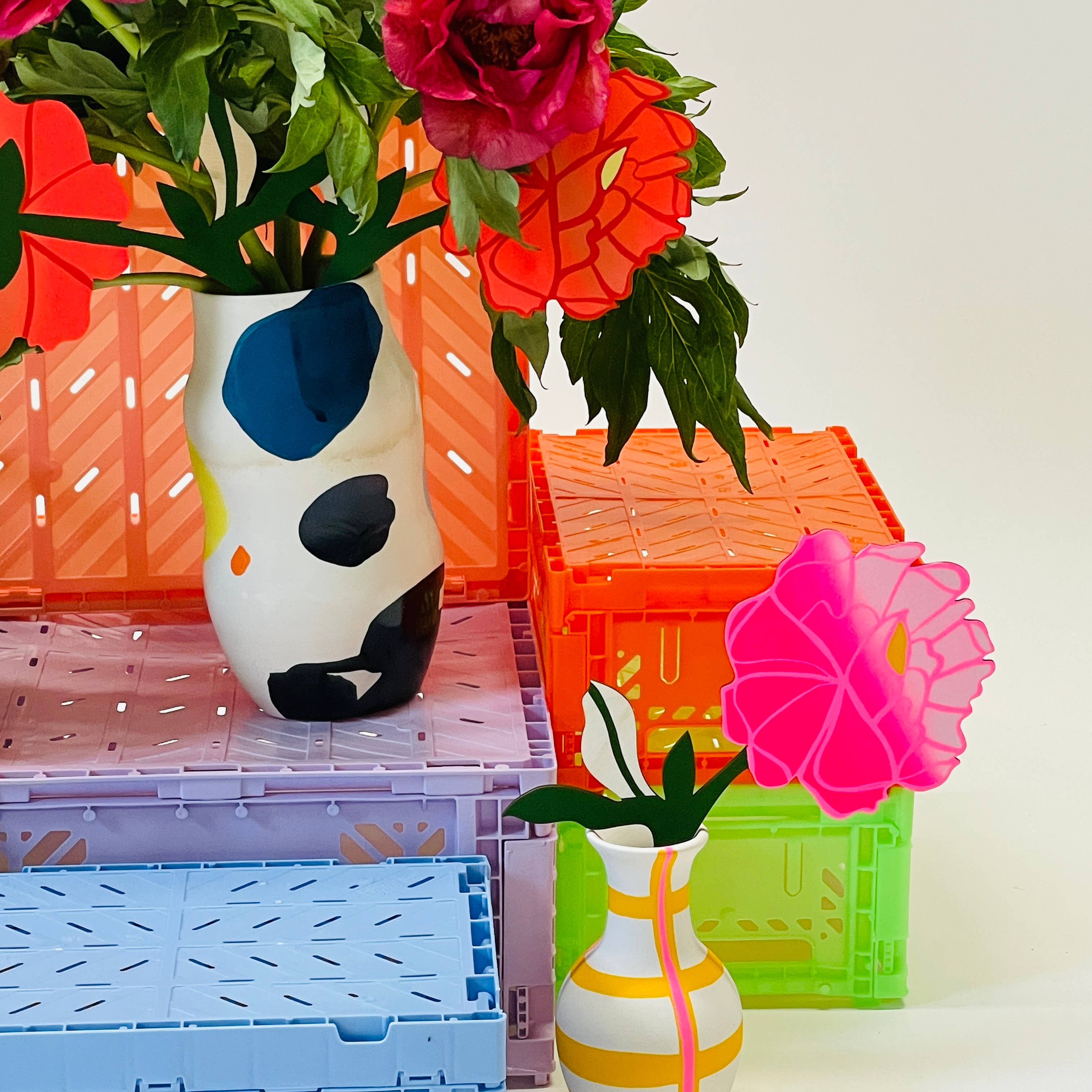 Peony season is the sweetest but way too fleeting—and real peonies don’t linger long either, which is a total bummer. Meet the FOREVER FLOWER! This hand-painted wooden bloom, painted front and back, captures all the ruffled charm of a peony in lively pink and coral red. Standing about 12" tall with a 5" wide blossom, it’s the perfect way to enjoy peony vibes all year round.