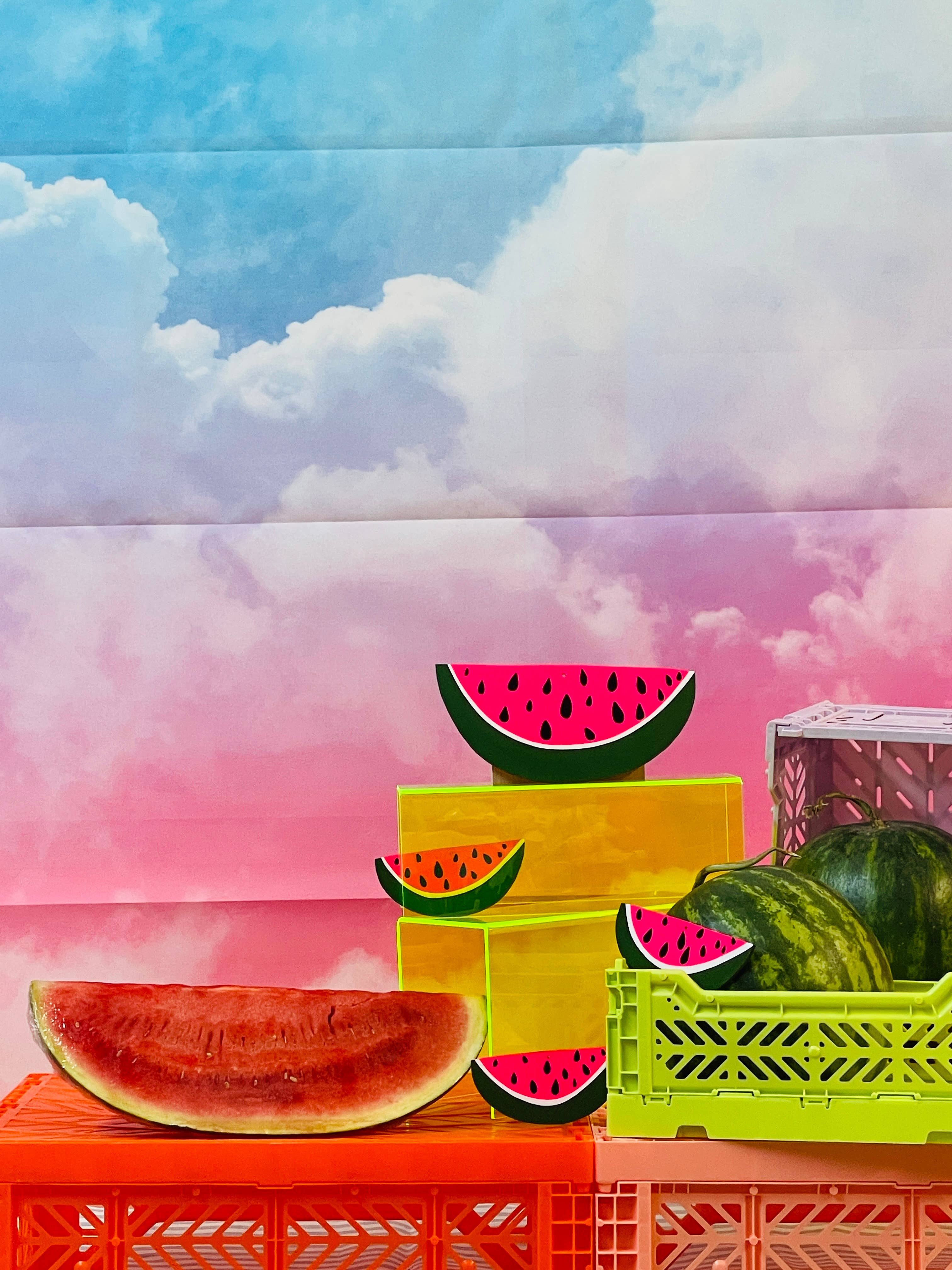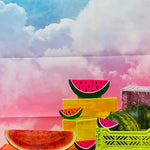 Bring some retro fun to your space with this watermelon wall charm! Hand-painted and inspired by those funky 70s kitchens, this wooden fruit decoration measures about 6" long and 4" wide, complete with a string for easy hanging.