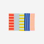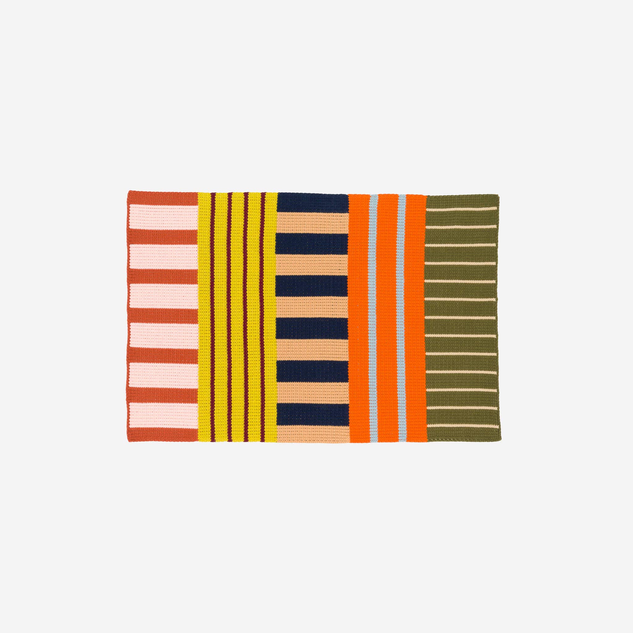 Two-tone knit mini rug with two-tone alternating stripes. Add a pop of color and pattern to your entryway, kitchen, bathroom, or bedside.