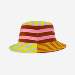 Knit bucket hat with colorblock stripe patchwork. Made from colorful, soft hypoallergic yarn. From sunny summer beach days to cold winter walks, this bucket hat is destined for year-round wear. Each hat is one of a kind – patchwork pattern placement may vary, but that's the fun of it!