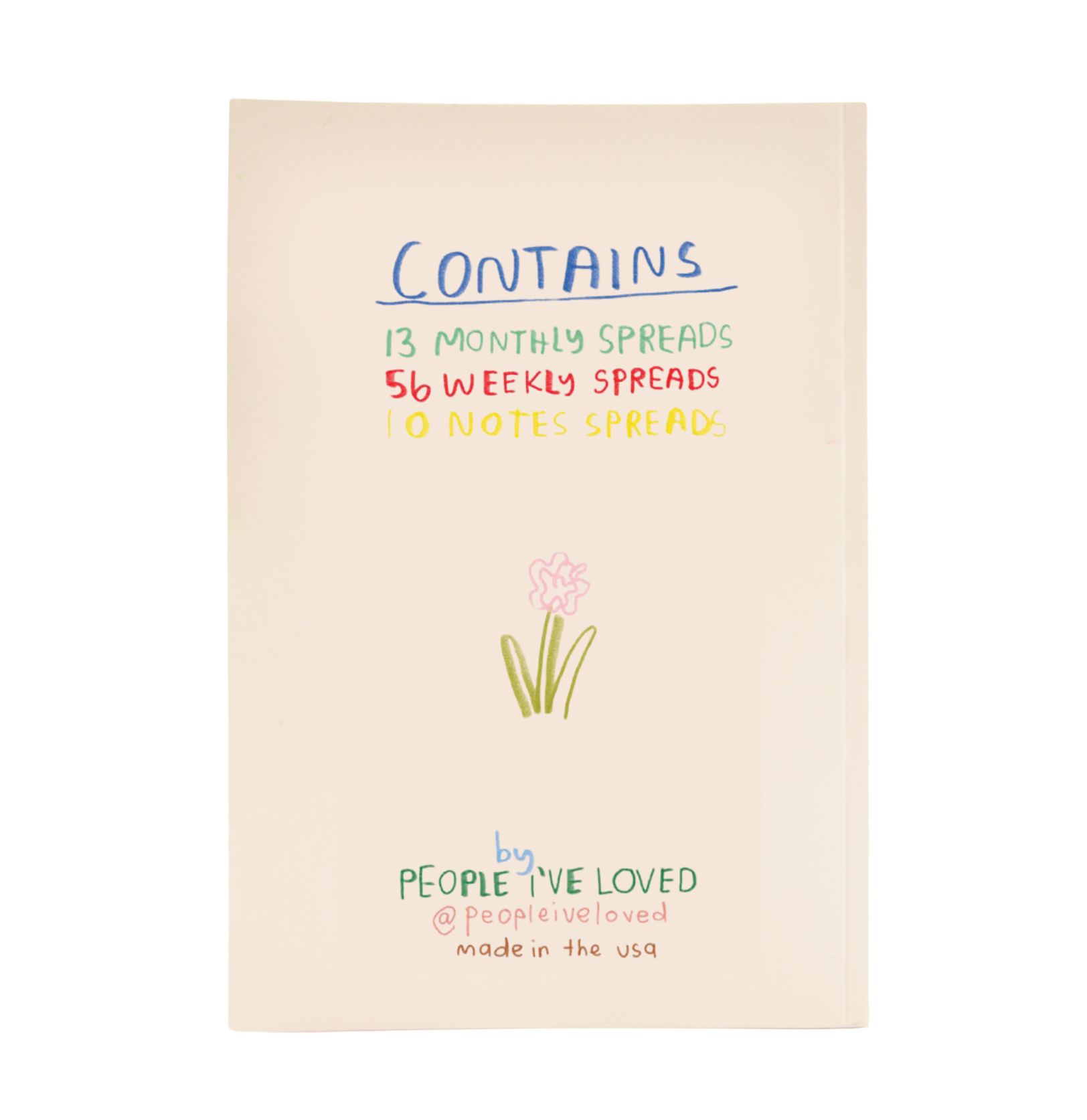 This planner includes: - 13 month-view spreads - 56 week-view spreads - 10 note spreads